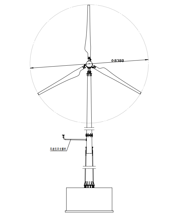 風輪直徑:8.38m 葉片數(shù)量及材質(zhì):3*增強型玻璃鋼