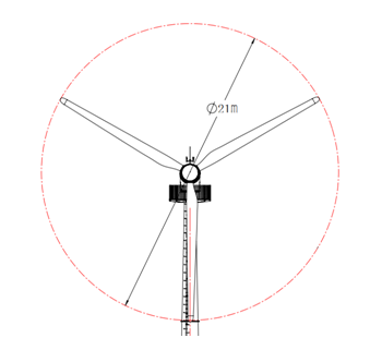 風(fēng)輪直徑:21m 葉片數(shù)量及材質(zhì):3*增強(qiáng)型玻璃鋼