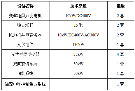 該項(xiàng)目為智慧型能源綜合利用示范項(xiàng)目,由變槳距風(fēng)力發(fā)電機(jī)、光伏發(fā)電系統(tǒng)、儲(chǔ)能系統(tǒng)、控制集成系統(tǒng)及30kW廠區(qū)辦公用電負(fù)載共同組成,負(fù)載優(yōu)先使用新能源發(fā)電系統(tǒng)供應(yīng)的電能,有余電能存儲(chǔ)到鋰電池儲(chǔ)能系統(tǒng)內(nèi),風(fēng)光出力不足時(shí)再由鋰電池組供應(yīng)負(fù)載用電。