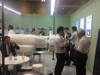 本次展會是日本第二大風(fēng)能展,也是風(fēng)能在日本關(guān)西地區(qū)設(shè)展的第一次,但ANE AHBJ-19.8kW對這里并不陌生,因為在同樣的場館,其早已在先前的太陽能電池展上亮過相。像以往一樣,本次AHBJ-19.8kW依然是吸引眾多參展客人眼球的“大殺器”,其獨特的外表總是能引人注目,駐足觀察,在聽到關(guān)于ANE獨特的變槳距技術(shù)的講解后,客人都紛紛稱道,大加贊賞。