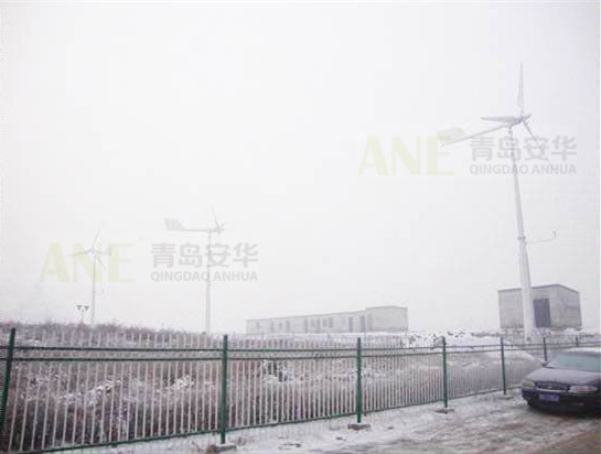 系統(tǒng)組成為2臺5kW變槳距風(fēng)力發(fā)電機及1臺10kW變槳距風(fēng)力發(fā)電機,8臺SMA WBP-box 400及國家電網(wǎng)公司下屬子公司獨立研發(fā)的并網(wǎng)逆變器。