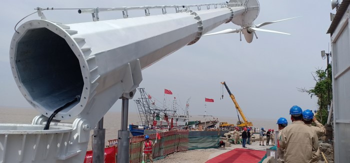 2019年5月24日,30kW變槳距風(fēng)力發(fā)電機和20米高液壓塔桿在開山島西南角順利安裝到位,“家就是島,島就是國”,風(fēng)力發(fā)電機塔桿上書寫著的八個大字在陽光下熠熠生輝。風(fēng)力發(fā)電機的投運,標(biāo)志著開山島微電網(wǎng)建設(shè)向前邁進(jìn)了一大步,開山島用電即將進(jìn)入2.0時代!