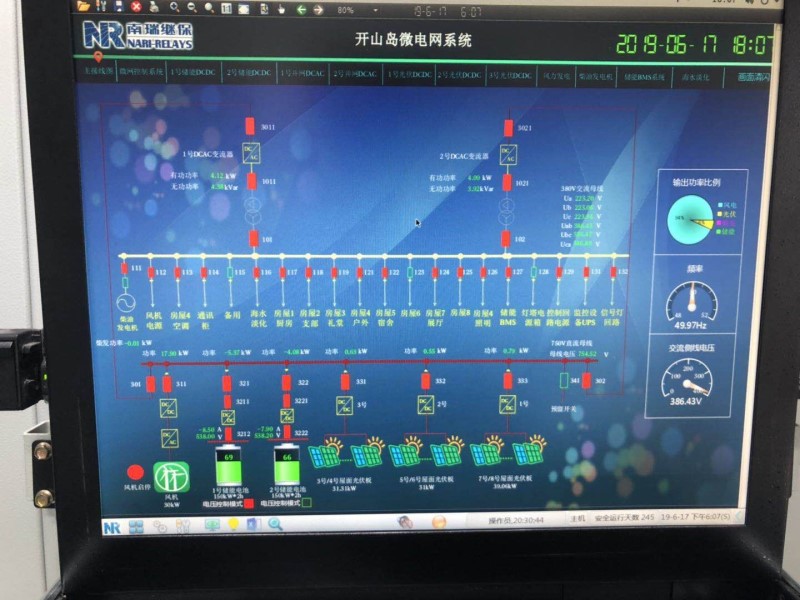 因為開山島遠離陸地,電力小哥哥在島上建設了海島綜合能源服務平臺,可以遠程實時對島上的用電情況進行控制,用以解決因為風、光發(fā)電波動幅度大而導致的用電質(zhì)量不高等難題。