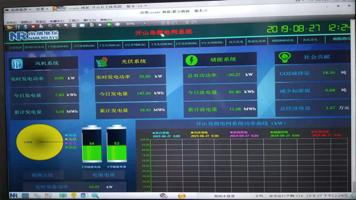 經(jīng)過2個多月的運行,開山島上運行的30kW變槳距風力發(fā)電機直流發(fā)電系統(tǒng)在8月27日早上的微電網(wǎng)綜合信息顯示平臺上的風力發(fā)電累計發(fā)電量顯示數(shù)值已經(jīng)達到3.94MWh,這個發(fā)電量是在整個微電網(wǎng)綜合能量管理系統(tǒng)根據(jù)現(xiàn)場發(fā)用電調(diào)度指令情況下實現(xiàn)的,并且發(fā)電功率多次達到30kW以上,這比項目規(guī)劃期待的發(fā)電效果要更好一些!