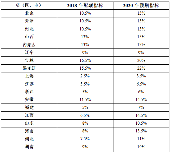 各省級(jí)行政區(qū)域2018年非水電可再生能源電力配額指標(biāo)