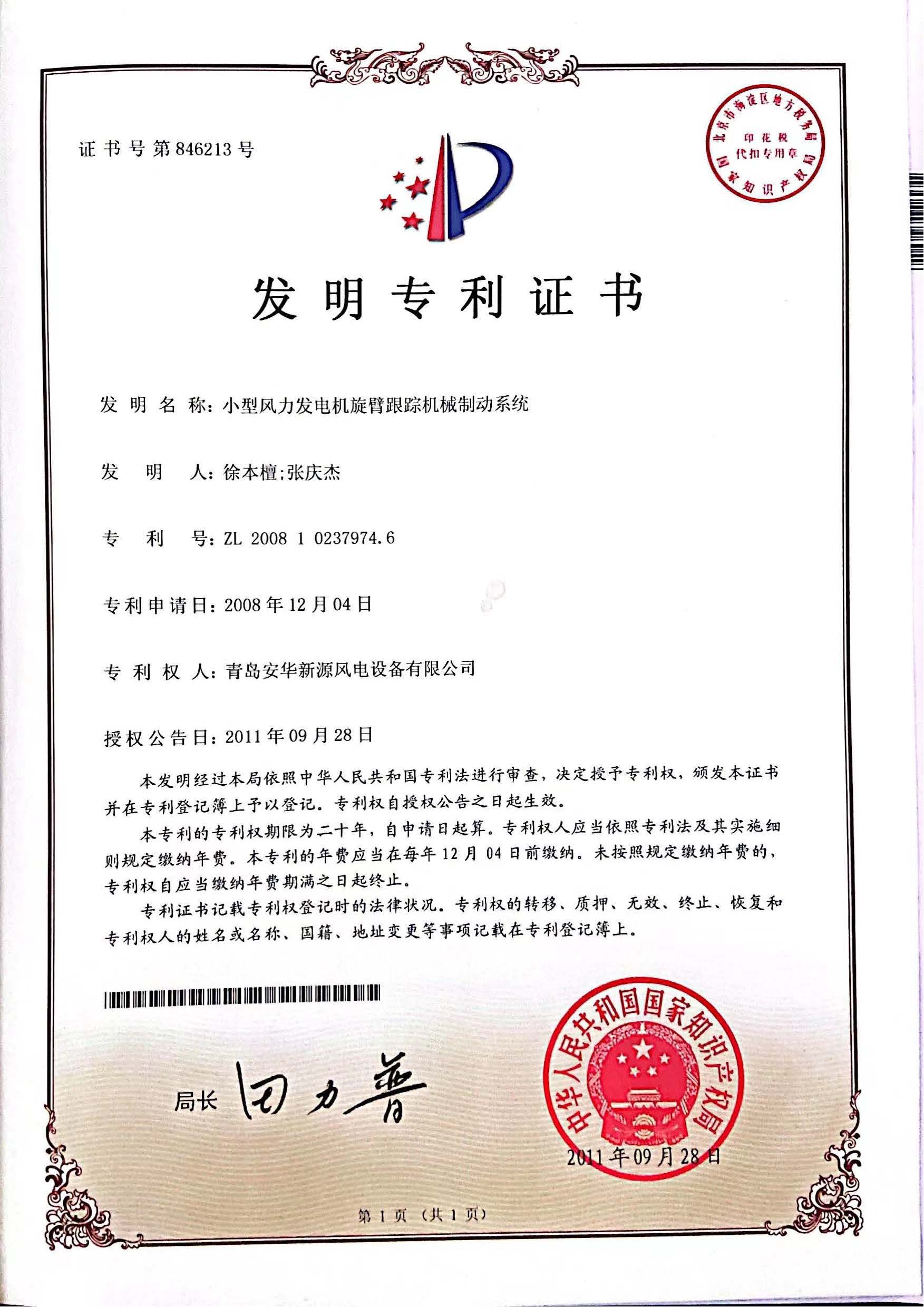 小型風(fēng)力發(fā)電機(jī)旋臂跟蹤機(jī)械制動系統(tǒng)
