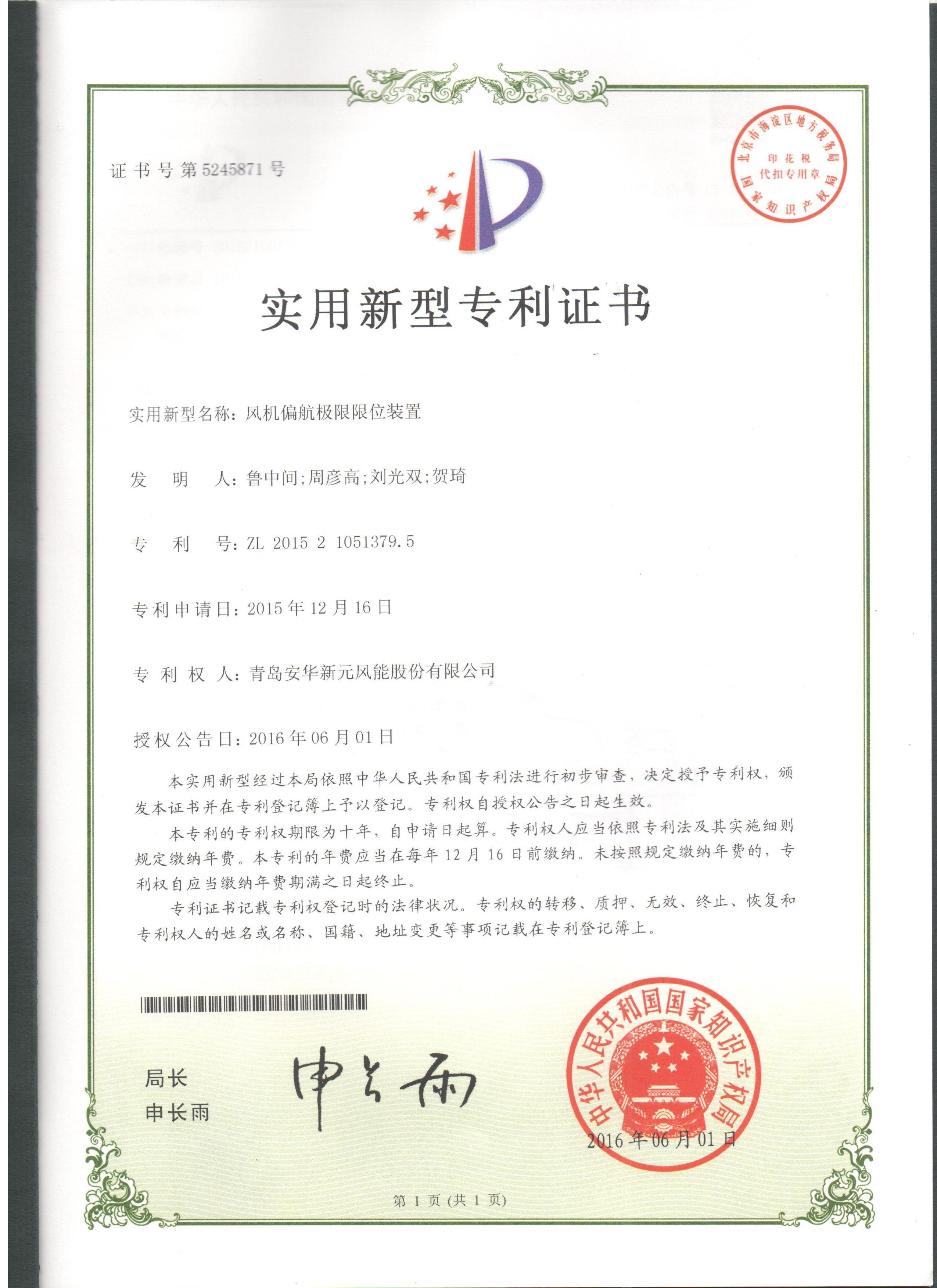 風(fēng)機(jī)偏航極限限位裝置