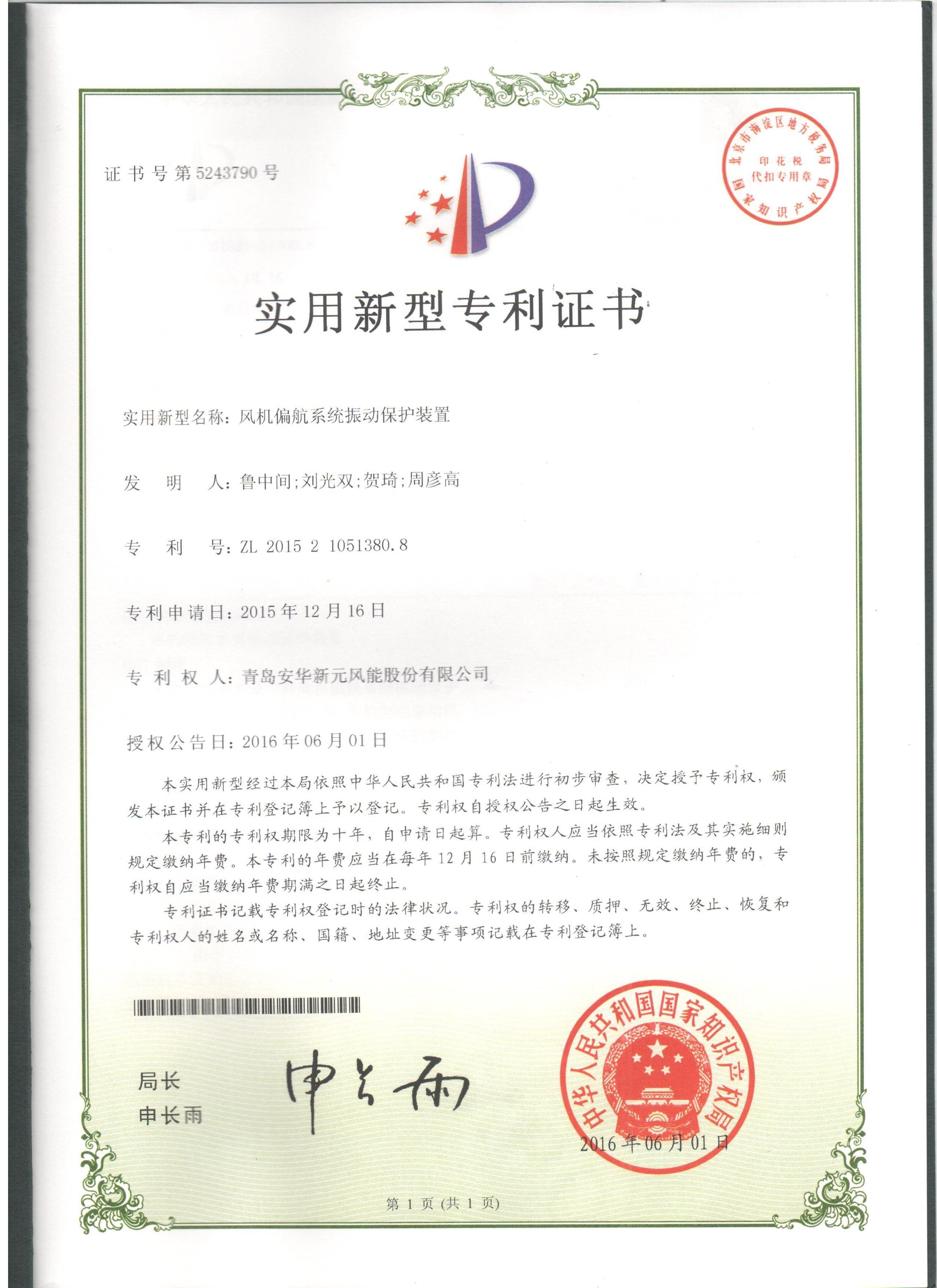 風(fēng)機(jī)偏航系統(tǒng)振動保護(hù)裝置
