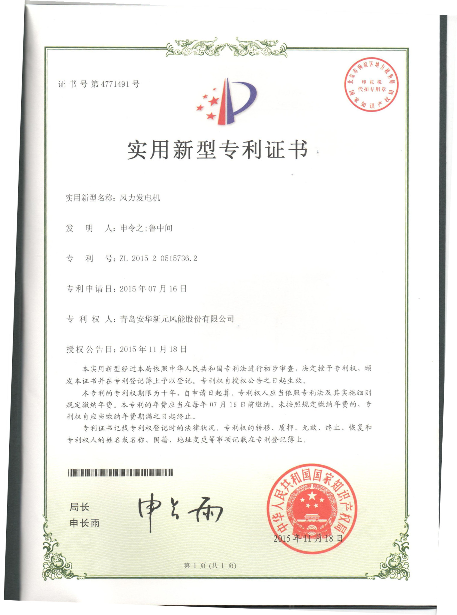 專利證書